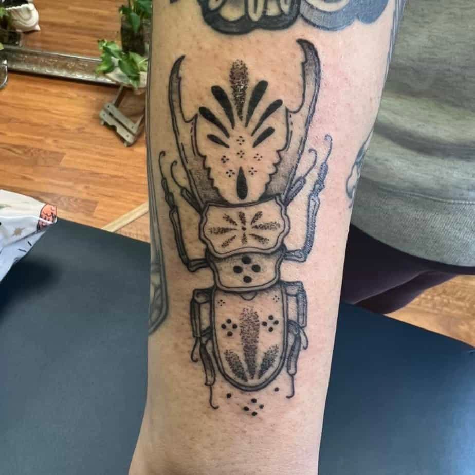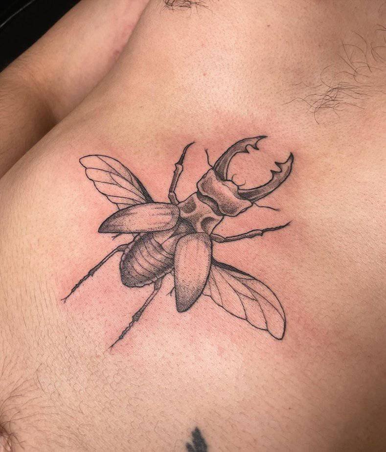 Clean lines and subtle shading make this minimal beetle feel timeless. It’s understated but meaningful, the kind of tattoo that ages well and doesn’t scream for attention. If you like simplicity with personality, you’ll appreciate this one.