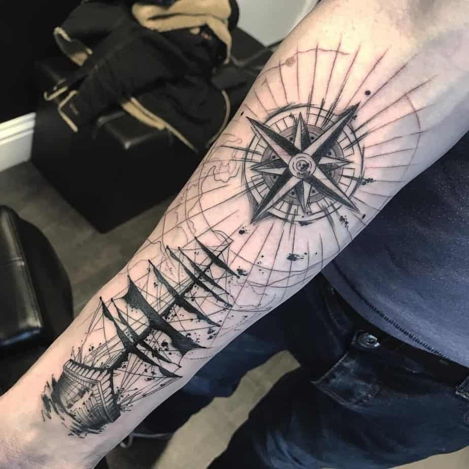 These are for people who want their skin to tell a loud story. Full-chest, back, or sleeve pieces with pirate-y symbols, ropes, ships, or dramatic shading read like a map of your adventures. The level of detail can make the compass feel almost sculptural — rich shadows; realistic textures. Big doesn’t always mean heavy-handed though: some large pieces keep fine-line detail so they still feel elegant.