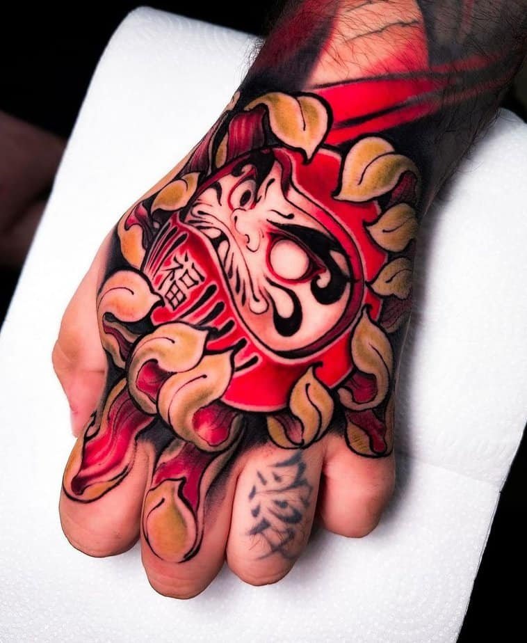 If you’re into bold choices, an intricate Daruma packed with color and ornamentation will feel like armor. Hand placement makes it constantly visible — a confident, in-your-face way to say you’re committed to your goals. It’s the kind of tattoo that boosts your posture just by being there.