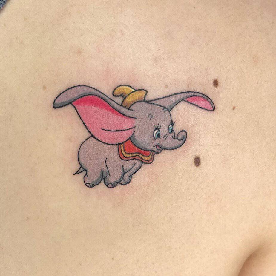 Dumbo’s big ears and tiny trunk are peak adorable, but the tattoo also carries a sweet message: embrace what makes you different. He’s shy and innocent, and that gentle vulnerability is what makes him unforgettable. A little reminder to be yourself, always.