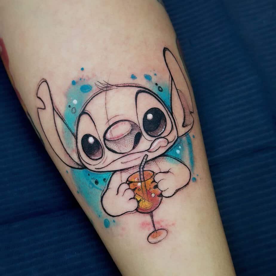 Here’s little Stitch being the lovable troublemaker we all root for — except this time he’s chilling with an Aperol Spritz. It’s such a playful twist: adorable, slightly chaotic, and perfectly relaxed. Sometimes a tattoo doesn’t need to be epic; it just needs to remind you to slow down, sip something bright, and enjoy the day.