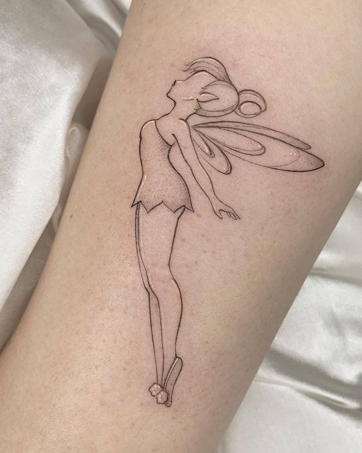 A fine-line Tinker Bell tattoo brings back all those carefree, airborne vibes. She’s a little stubborn and jealous sometimes, sure, but she’s loyal and fierce when it counts. This one’s nostalgic, flirty, and a tiny pocket of childhood magic.