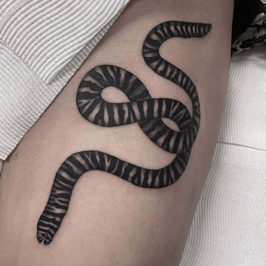 Realism fans, this one’s for you. A realistic eel that makes people do a double-take — it’s the kind of tattoo that invites curiosity and admiration.