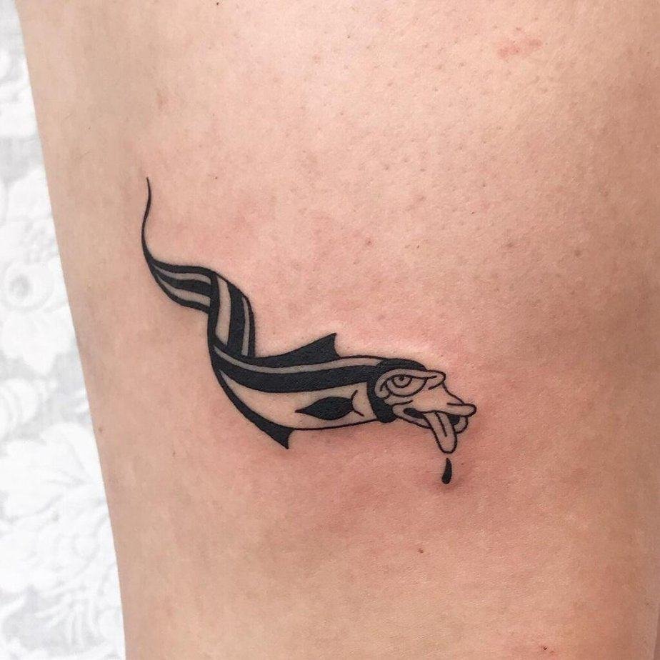 If you’re nostalgic for classic tattoo vibes, this minimal traditional eel gives that timeless feel. Clean, bold, and unapologetically old-school.
