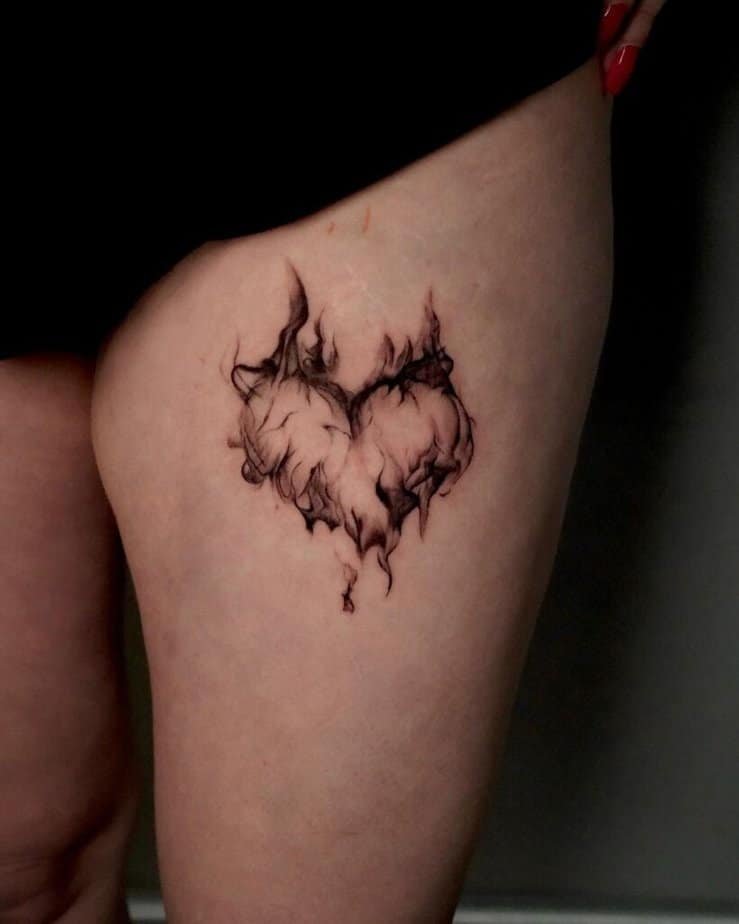 A heart on fire can mean a lot — fierce love, burning emotions, or even the messier sides of a relationship. It’s versatile because it can be romantic, tragic, or cheeky depending on the style you choose.