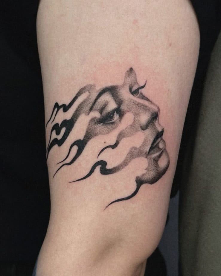 A face on fire can represent so many things: transformation, struggle, passion, or even resistance. It’s art-forward and makes an emotional statement without needing words.