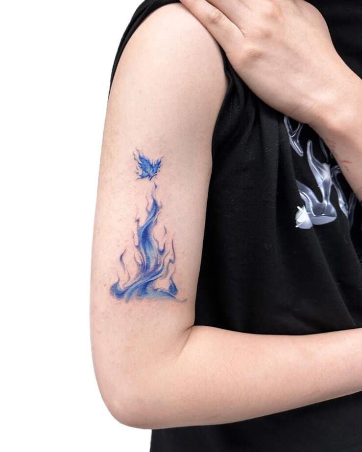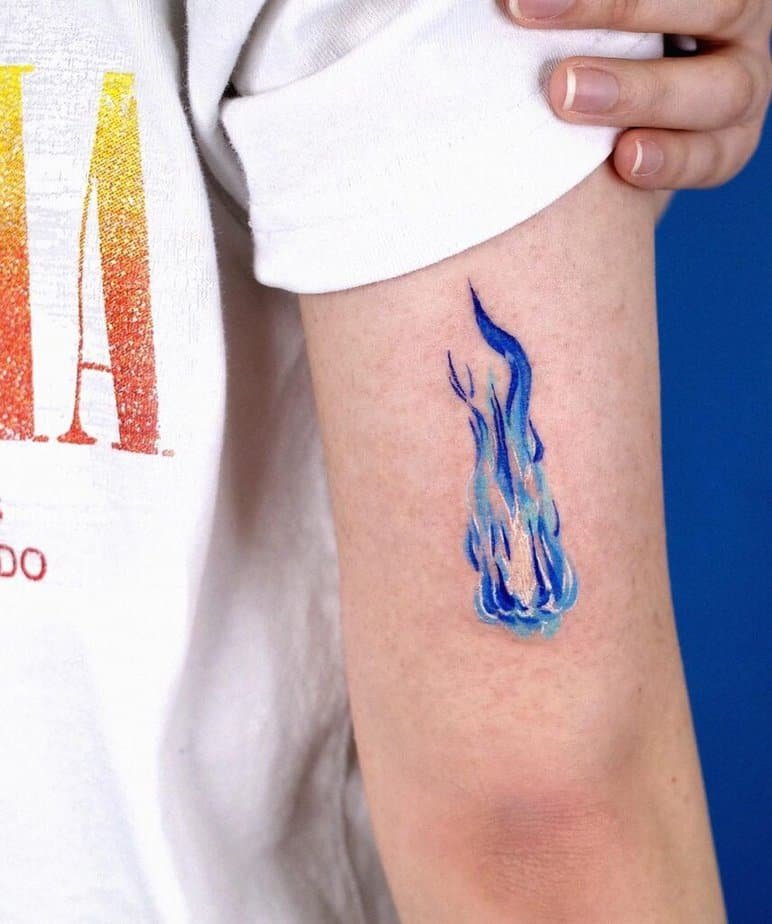Pair a blue flame with a butterfly and suddenly your tattoo reads like a story: transformation, growth, and moving forward. It’s hopeful and a little poetic — perfect if you want meaning wrapped in beauty.