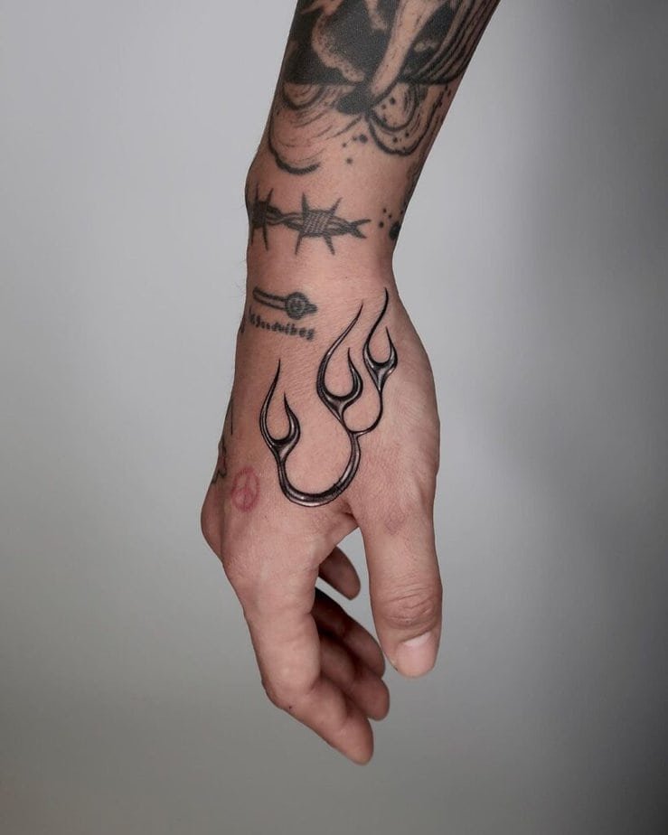 Hands are always on display, so a tattoo here needs intention. A flame that stretches across the hand is unapologetic — it makes you feel powerful, visible, and a little bit unstoppable. Just be picky about the design, because yeah, it’s there to stay.