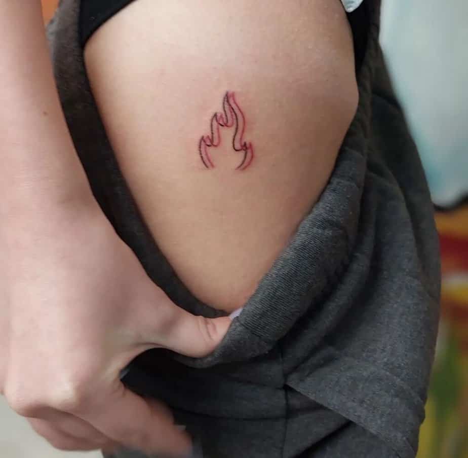Hip and thigh placements feel intimate — mostly hidden, but so special when revealed. A fine-line flame here is like a private talisman: sweet, sensual, and totally yours.