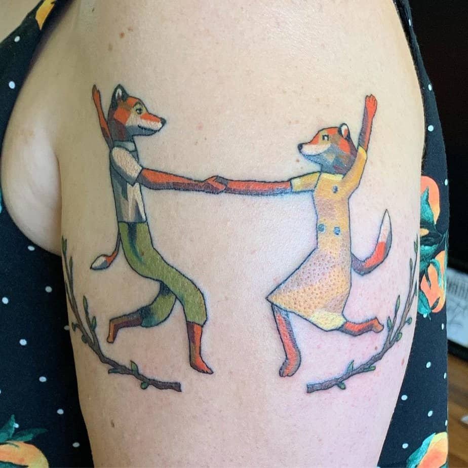 If you’re a Fantastic Mr. Fox fan, this dancing pair is an adorable shout-out to love and partnership. The geometric touches are subtle, letting the sweet scene do the talking—charming and a tiny bit nostalgic.