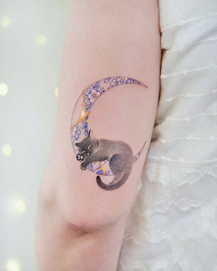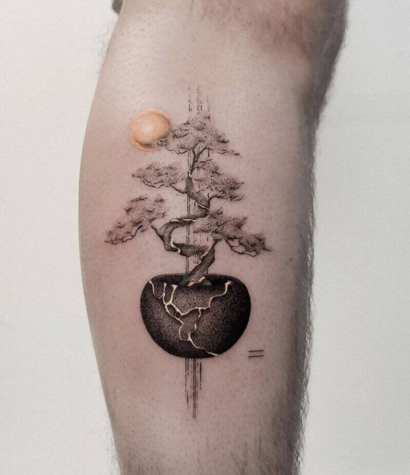 Kintsugi began with pottery, right? You don’t toss a broken vase; you highlight the repairs with gold. This tattoo leans into that idea and adds geometric shapes for a little structure. It’s like saying, "my cracks are part of my design." I love how practical and poetic that is at once.