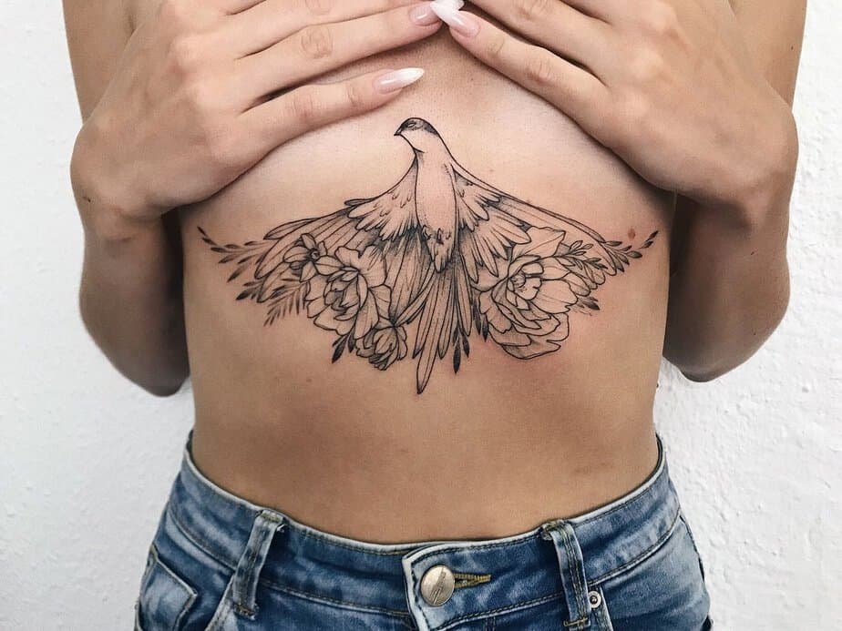 Want something that turns heads? A bird surrounded by flowers reads romantic and free-spirited. It says you value freedom and beauty, with a touch of dramatic flair.