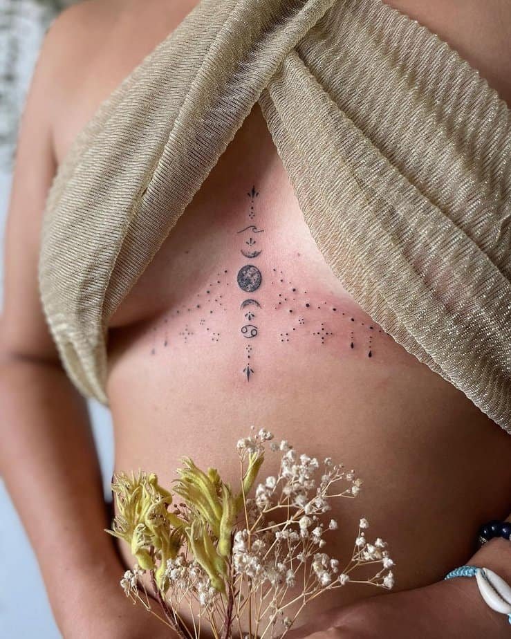 If you’re not ready to go big, a sweet little ornamental design is a gentle way to test the waters. It sits tucked between the breasts and feels intentional without taking over. It’s perfect for first-timers or anyone who loves subtle details — something tiny that still feels special.