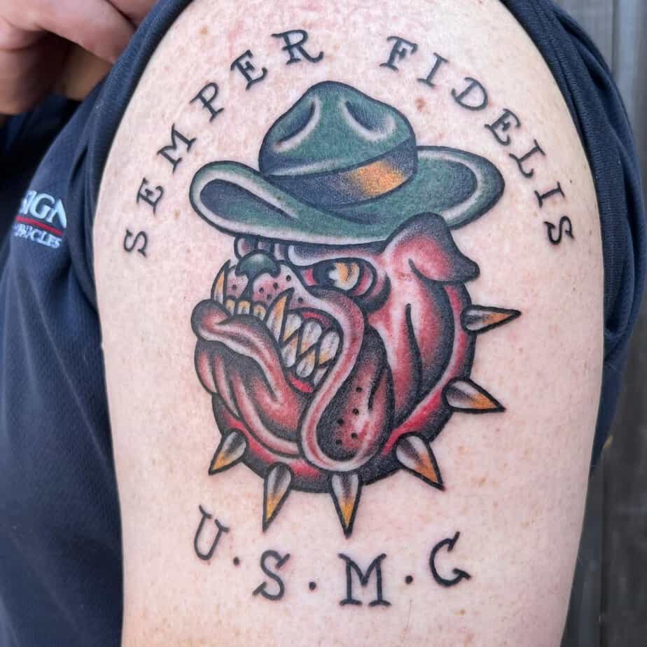 A bulldog with the Marine motto is adorable and fierce at once. It sums up loyalty, grit, and a stubborn kind of love.
