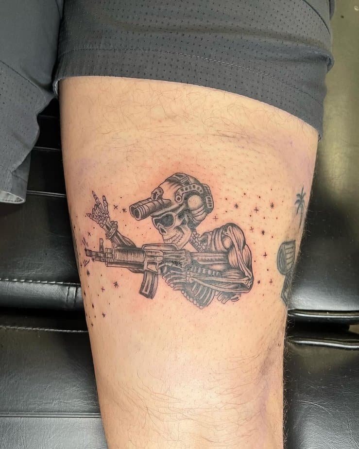 This little guy makes me smile. It’s playful, light, and reminds you that even in tough spaces, there’s room for humor and personality. If you want a tattoo that’s fun but still honors service, this is a sweet pick.
