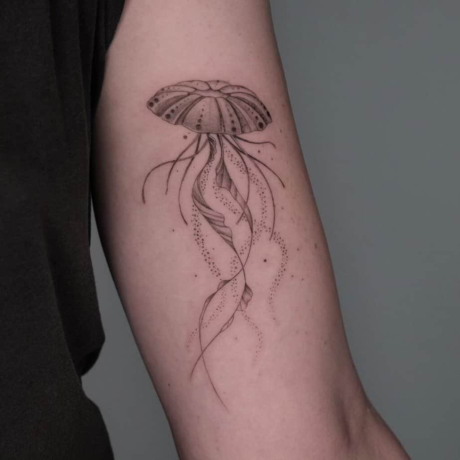 Jellyfish bring this weird, serene energy — they’re calm but they can pack a punch. A jellyfish tattoo can mean protection, strength, and loyalty to your people. Plus, they’re visually stunning in motion.