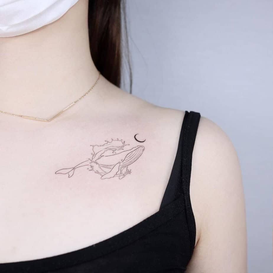 Collarbones are great for tattoos that you can hide or show depending on the outfit. A whale brings gravitas — power, intelligence, and a peaceful presence. It’s like carrying a calm giant with you.