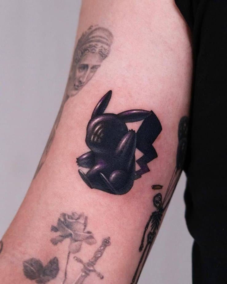This split design captures two sides of the same character: the adorable Pikachu we all love, and a fiercer, action-ready version. It’s perfect if you want a tattoo that’s playful but also tells a story about contrast.