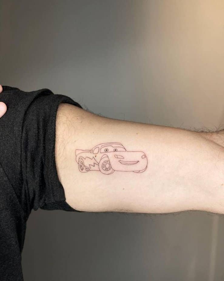 A minimalist outline of Lightning McQueen is just cool. Clean, fast, and modern — it says a lot about speed and character without shouting. It’s stylish and clever, perfect for someone who wants subtle fandom flex.