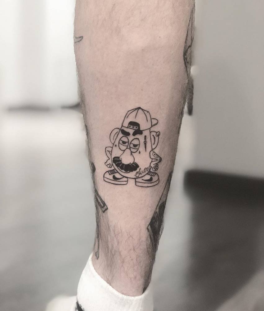 This remix of Mr. Potato Head with a backward cap and sneakers is silly in the best way. It’s nostalgic but with a wink, the kind of tattoo that makes people grin and say, “oh man, that’s brilliant.” Playful, modern, and full of attitude.