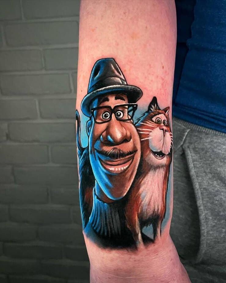 This Joe Gardner piece is pure heart. His hat, his glasses, that smile — the tattoo captures his love for music and the complicated, beautiful way a passion can shape a life. It’s a great reminder to follow what lights you up, even when the road gets weird.