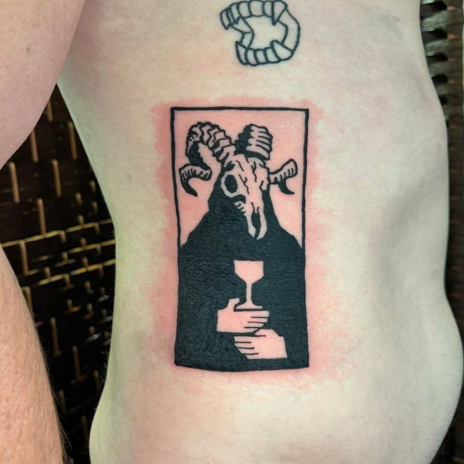 If you want something discreet that still reads as a ram skull, this small arm tattoo nails it. Compact but detailed, it’s a great starter piece that still looks intentional and finished.