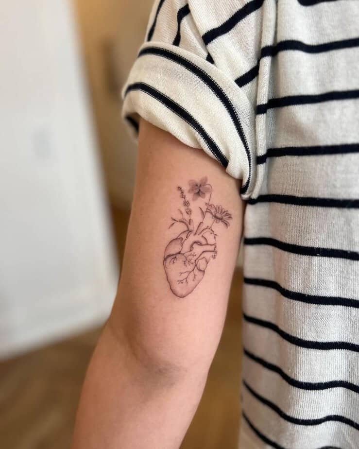 A human heart with flowers growing out of it — how symbolic is that? It’s about growth, healing, and becoming your fuller self. Soft, a little triumphant, and quietly poetic. Perfect when you want your ink to tell a story about inner transformation.