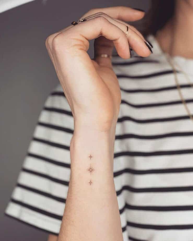 Wrist tattoos are the perfect little secret: small, simple, and easy to show off when you want. A tiny cluster of sparkles here feels playful without trying too hard — just enough to sparkle when you move your hand.