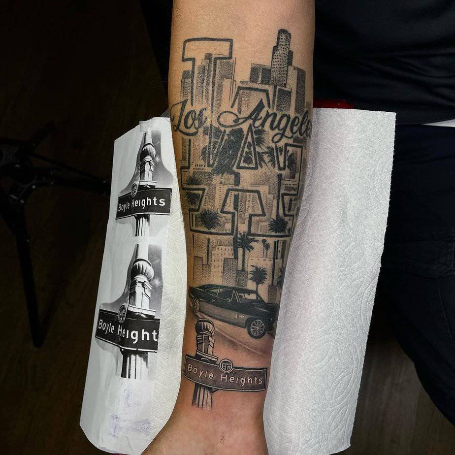 A Los Angeles street tattoo for the forearm crowd