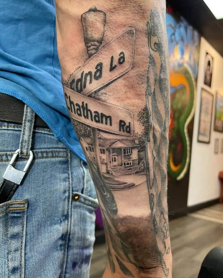 Whether you’re flirting with the idea of honoring your hometown or thinking about tattooing the street you grew up on, I’ve got you — and honestly, this whole idea feels kinda sweet. Street tattoos are one of those things that look deceptively simple but carry a ton of heart: a street sign, a name, a little skyline — all of it can mean your people, your roots, or the path you’re still walking. You can stick with those traditional meanings or make up your own. Either way, here are 21 ideas that made me smile — hope one of them sparks something for you.