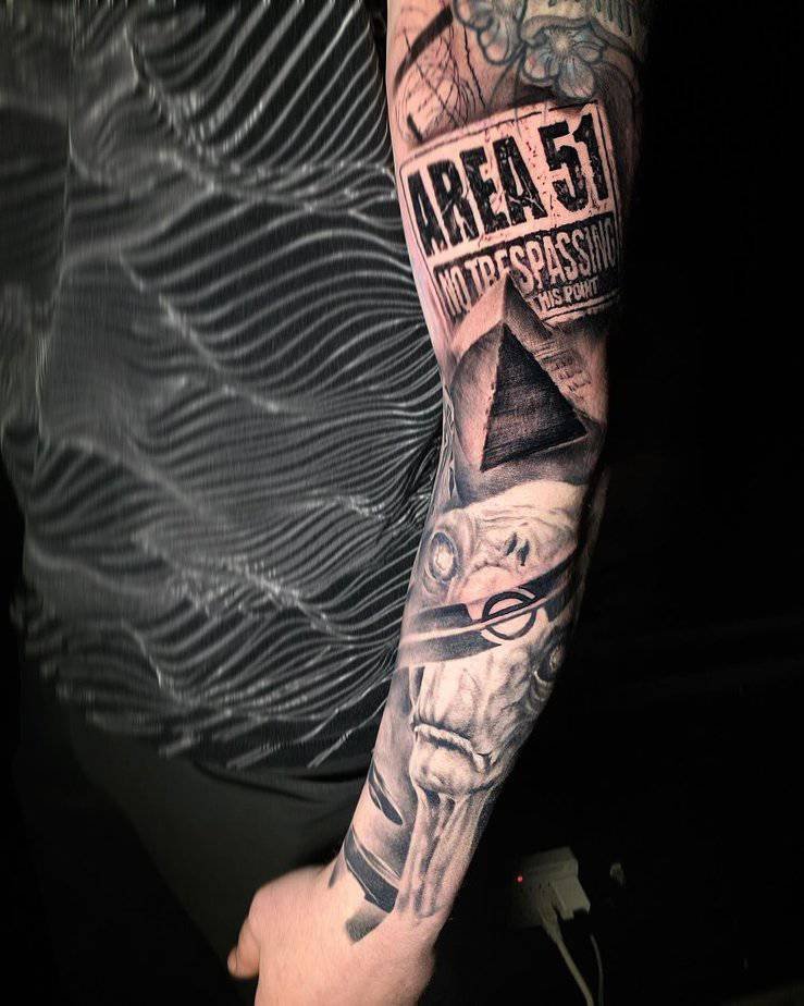 An Area 51-inspired street tattoo if you love the weird stuff
