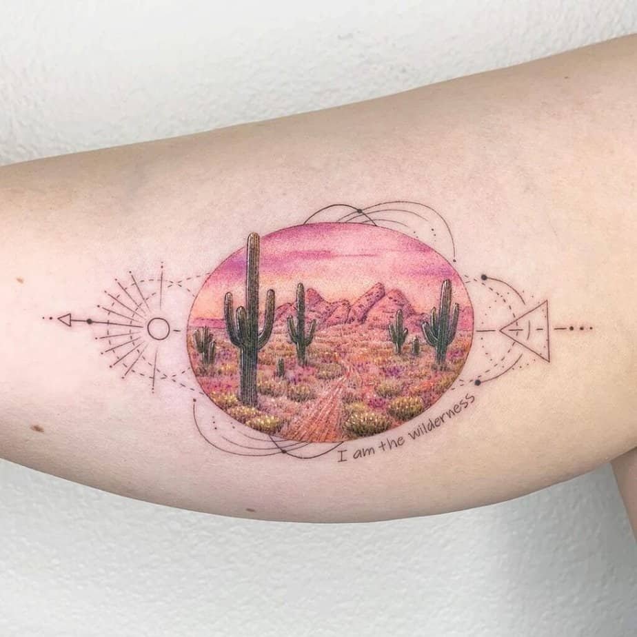 You know that feeling when you wish a sunset would just pause? A framed sunset tattoo gives you that: a little window to freeze the moment you loved. It’s simple but nostalgic, like a memory you return to.